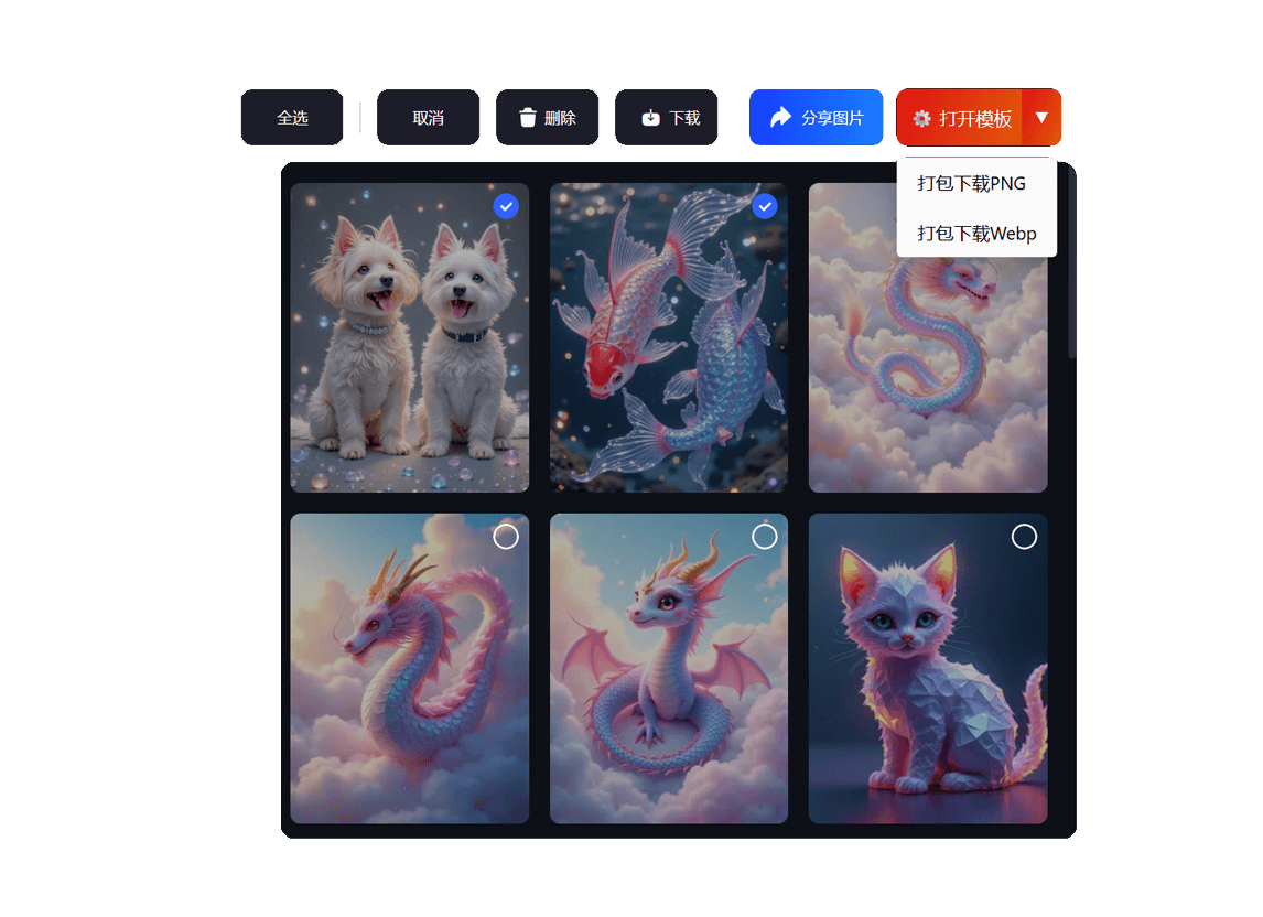 支持哩布AI图库 一键打包下载png和webp格式